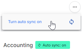 Users with an Admin or Pro profile can turn the Auto Sync on by navigating to the upper right side of the Accounting page and clicking on the 3 dots. Â
